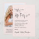 Élégante invitation de mariage rose clair avec "Happily Ever After Party" dans un script chic et vos noms dans un script signature. Au verso, ajoutez votre photo et entrez l'adresse de votre site Web mariage pour créer un code QR que vos invités peuvent scanner en ligne à RSVP et obtenir des détails supplémentaires.