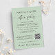 Élégant salon vert sage ou faire-part mariage privé et réception de mariage ou invitation de fête de fête. "Happily Ever After Party" est écrit dans un mélange de typographie simple et d'un script élégant avec des swashes. Personnalisez votre faire-part et votre invitation, créez un code QR lié à votre site mariage pour que vos invités puissent scanner pour plus d'informations et à RSVP en ligne, et ajoutez vos noms dans un script signature. Au verso, vous trouverez votre photo de mariage préférée, vos prénoms et les dates de mariage et de réception.