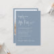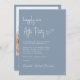 Invitation minimaliste de mariage bleu poussiéreux avec "Happily Ever After Party" dans un script blanc chic, votre invitation en typographie serif blanche classique, et vos noms dans un script signature. Au verso, téléchargez votre photo et entrez l'adresse de votre site Web mariage pour créer un code QR que vos invités peuvent scanner sur RSVP en ligne et obtenir des détails supplémentaires.