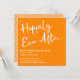 Ce design est basé sur l'inverse de mon design original en noir et blanc plus standard, avec l'avantage de pouvoir changer le fond pour l'adapter aux couleurs de votre mariage... ou simplement choisir une couleur que vous aimez tous les deux. Invitez vos invités à célébrer votre union récente avec cette carte d'invitation de réception de mariage moderne et saisissante, blanche sur fond orange. J'ai utilisé une police de caractères script épaisse et décontractée pour créer une superposition de typographie graphique qui indique "Happily Ever After" (Pour toujours heureux). Vos détails sont rendus dans une police sans-serif grasse et complémentaire. Remplissez les espaces vides du modèle avec vos informations pour personnaliser le design. Toutes les couches ont été laissées déverrouillées afin que vous puissiez cliquer pour personnaliser davantage et repositionner le texte ou même changer les tailles ou les polices (et la couleur de fond !) si vous en avez besoin. Au dos de la carte, j'ai placé un motif rétro amusant qui peut être facilement remplacé par le motif graphique ou la photo de votre choix. Alternativement, n'hésitez pas