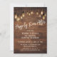 Cette carte de réception de mariage moderne et rustique présente un mur en bois brun foncé riche surmonté d'ampoules Edison. J'ai utilisé une police manuscrite moderne pour rendre un graphique représentant les mots "Happily Ever After" (Heureux pour toujours). Votre propre texte est facilement ajouté pour personnaliser ce modèle autant que vous le souhaitez. Utilisez les champs du modèle pour saisir simplement vos informations personnelles, et cliquez pour personnaliser davantage si vous souhaitez repositionner l'une des couches déverrouillées ou modifier votre police. N'hésitez pas à me contacter pour des demandes spéciales ou pour obtenir de l'aide pour la personnalisation.