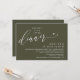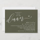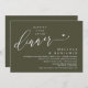 Marquez le début de votre éternité avec élégance en utilisant notre carte d'invitation à la célébration de l'élévation mariage, "Happily Ever After Dinner". Parfait pour les couples qui souhaitent profiter de leur joyeux événement, cette invitation exhale le raffinement avec un soupçon de jeu, préparant le terrain pour un événement mémorable. Orné d'un thème vert olive intemporel, il ajoute une touche de charme raffiné à vos festivités. Conçu par TeeshaDerrick, cette invitation promet de capturer magnifiquement votre histoire d'amour.