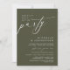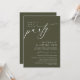 Annoncez et partagez votre bonheur toujours après dans le style avec notre design moderne à thème vert olive (Heureusement toujours après la fête) mariage elopement carte d'invitation à la célébration. Idéal pour les couples qui ont décidé de célébrer leur meilleure journée. Avec son design sophistiqué et ludique, cette invitation vous donnera le ton pour un événement inoubliable. La carte d'invitation présente un thème design de script moderne et minimaliste, ajoutant une touche d'élégance intemporelle à votre célébration. Conçu par TeeshaDerrick