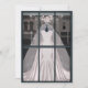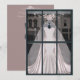 Parfait pour toute mariée avec charme féminin et style vintage. Une belle robe de mariée sirène à peine rose dans une vitrine de magasin vintage chic, l'intérieur de la carte représente l'intérieur du magasin, la robe et le voile ayant été retirés du mannequin et emballés dans de grandes boîtes roses avec des rubans roses. Idéal pour la mariée, les félicitations de fiançailles ou les événements liés au mariage.