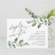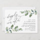 Belle conception romantique moderne, thème aquarelle de feuilles d'eucalyptus, annonce de mariage intime, carte d'invitation (Heureux pour toujours). C'est parfait pour votre réception de mariage et la fête de célébration après le mariage. Ajoutez les détails de votre célébration de brunch / dîner de mariage intime.