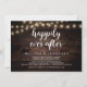 Belle célébration de mariage Heureux pour toujours, carte d'annonce / invitation de mariage en fuite, dans un design de bois de ferme rustique avec lumières de corde. C'est parfait pour votre réception de mariage et votre fête de célébration après le mariage. Ajoutez vos détails dans la même police / lettrage.