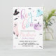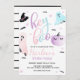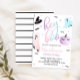 Une fête d'halloween pas éffrayante ! Aquarelle pastel, rose, violet et bleu Hey Boo Ghost Halloween invitation à l'anniversaire avec arrière - plan rayé noir et blanc.