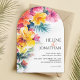 Votre mariage de destination mérite une invitation aussi unique que votre histoire d'amour, et notre Hibiscus Elegant Tropical Destination Wedding Invitation vous offre exactement cela. Cette carte mariage élégante présente une palette colorée et étonnante, inspirée des fleurs tropicales luxuriantes, aux teintes vives de rose, d'orange et de vert qui transportent instantanément vos invités au paradis. La forme voûtée chic apporte une touche élégante, donnant le ton de votre célébration inoubliable. De plus, avec une personnalisation facile, vous pouvez personnaliser chaque détail pour correspondre à votre vision unique, du libellé aux détails de l'événement, en vous assurant que vos invitations sont aussi distinctifs que votre histoire d'amour. Commandez le vôtre et laissez vos invités expérimenter la magie de votre mariage de destination dès l'ouverture de l'invitation.