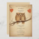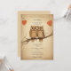 Hiboux mignons amoureux. Personnaliser ce faire-part de mariage adorable est parfait pour un couple qui aime les hiboux. Le devant de l'invitation présente une paire de hiboux assis sur une branche, avec des feuilles en forme de cœurs.