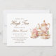 Elegant bridal shower invitation featuring a pastel teapot and tea cups illustration with gold accents paired with serif and script fonts in which your personalized information is written in. Check out our store for more items from this collection.