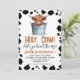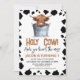 Highland Cow In Bucket Cow Imprimer 1er anniversaire Invitation Jolie vache sainte invitation d'anniversaire pour un petit garçon avec une jolie vache haute dans un seau et un motif d'impression de vache noire autour du bord de l'invitation. Cette invitation à l'anniversaire de la vache des montagnes peut être utilisée pour n'importe quel âge.