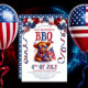 La vache montagneuse la plus fraîche, portant une paire de lunettes de soleil et brandissant un drapeau sous une voûte patriotique en rouge, blanc et bleu, est la base de cette célébration "4 juillet" du "barbecue".