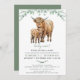 Invitation Highland Cow Sage Boho Baby shower verdoyant