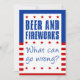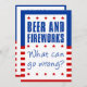 Bière et feux d'artifice - Qu'est-ce qui pourrait mal tourner Invitation drôle pour une fête du 4 juillet. Une invitation hilarante pour une fête de l'Indépendance avec de l'alcool et des feux d'artifice ! Couleurs rouge, blanc et bleu.