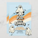 Quatre Jamais Éffrayants ! Retro super Ghost Halloween invitation fête d'anniversaire en bleu et orange. Invitation de bash d'anniversaire Spooktaculaire avec fantôme rétro et chauves-souris.