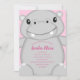 Ce thème de design Hippo Baby shower Collection avec un Hippo tout simplement adorable sur une palette de couleurs rose, bleu ou vert célèbre votre anniversaire et Baby shower très spécial. Personnalisez ceci plus loin avec les détails de votre fête d'anniversaire et de votre baby shower facilement et rapidement. Appuyez simplement sur le bouton customiser pour réorganiser et formater le style et le placement du texte. Créé par Rachel Alvia, © Alicorn Studio