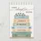 Tournez la page vers une nouvelle année avec cette invitation d'anniversaire de livre d'histoires. Une pile d'aquarelle de livres en bleu, vert et beige doux avec un accent feuillu se marie avec la typographie classique et moderne pour un design intemporel.