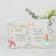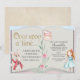 Cette invitation de fête magique et enchanteresse présente un thème de livre d'histoires de conte de fées d'Alice au pays des merveilles. L'arrière-plan présente un joli livre rose avec des images d'Alice au pays des merveilles imprimées dans un style de peinture à l'aquarelle. La phrase "Il était une fois" est imprimée dans le coin supérieur gauche dans un style de paillettes dorées, police de caractères de conception vintage. C'est parfait pour une baby shower, une fête d'anniversaire ou une autre célébration de conte de fées fantaisiste.