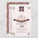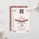 Cette invitation au premier anniversaire d'une fille sur le thème "il était une fois" présente un livre rose orné d'un château. Le verso présente un fond bordeaux avec des motifs floraux. Personnalisez-le selon vos besoins.