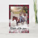 hiver à la ferme carte pliante vierge plaid rouge et neige avec 4 chevaux dans la neige avec poutre