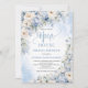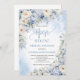 Invitation Hiver bleu poussiéreux et fleurs d'ivoire Open Hou