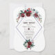 Elégant, Bourgogne, Blanc Floral design carte. Il présente un magnifique bouquet floral d'aquarelle blanche avec des pins et des baies, des flèches florales uniques avec des coeurs comme séparateur, une magnifique forme de diamant, sur un arrière - plan bleu marine/blanc. Utilisez l'outil Personnaliser pour ajouter vos informations. Pour les articles correspondants, veuillez visiter ma collection de bouquets floraux d'hiver.