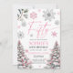 50 invitations anniversaire avec des flocons de neige roses et argentés et des pins. Idéal pour votre 50ème anniversaire d'hiver.