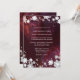 Fleurs blanches chic, flocons de neige et tourbillons élégants avec arrière - plan texturé rustique en couleur merlot conçu sur les invitations officielles de mariage personnalisées. Invitations de mariage d'hiver uniques et fantaisistes, vous pouvez facilement personnaliser avec votre propre texte. (Vous pouvez trouver les essentiels et les faveurs mariages correspondants dans ce magasin, le paradis nuptial. Contactez ujean4791@gmail.com pour un travail personnalisé et/ou la coordination de la papeterie mariage.))