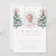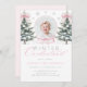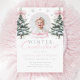 Fêtez le premier anniversaire de votre petite fille avec cette invitation Winter ONEderland. Doté d'un arc rose en ruban, de flocons de neige et d'arbres enneigés, ce design charmant est parfait pour une célébration hivernale magique. Élégant et doux, c’est le moyen idéal pour la famille et les amis invitations de la journée spéciale de votre petite fille.