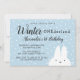 Simple, mignon, dessin animé lapin blanc et jour d'hiver avec la neige. Unique, fantaisiste, adorable bleu Hiver ONEderland 1er anniversaire invitation.