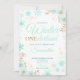 Carte d'invitation d'anniversaire Hiver Onederland Flocon de neige Vert Or