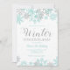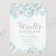 Winter Onederland invitation de premier anniversaire avec des flocons de neige en parties scintillant turquoise et argent.