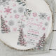 Soixante-dix invitations d'anniversaire avec des flocons de neige roses et argentés et des pins. Idéal pour votre 70ème anniversaire d'hiver.