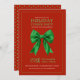 Invitation Holiday Dinner Party Green Satin Bow Red