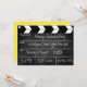 Invitation clapperboard de la fête de graduation noire et jaune prêt à être customisé à vos spécificités.