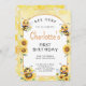 Buzzing with Joy - Jote Honey Bee & Sunflower Invitation Anniversaire Célébrez la journée spéciale de votre petit avec cette adorable invitation pour l'anniversaire des enfants avec un charmant thème d'abeille au miel! De délicieuses abeilles à miel flottent autour de tournesols lumineux et joyeux, créant un design chaleureux et accueillant parfait pour une célébration amusante. La palette colorée jaune et vert ajoute une touche de beauté à la nature, ce qui la rend idéale pour les anniversaires du printemps et de l'été. Personnalisez le texte pour inclure le nom de votre enfant, son âge et les détails de votre fête. Cette invitation apportera un sourire à tous vos invités et donnera le ton pour un bain d'anniversaire doux et mémorable !