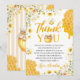 Send a buzz of gratitude with this matching "Sweet to Bee One" thank you card. Featuring the signature happy bee, honey jar, and golden honeycomb accents, this stationery perfectly completes your party suite. The bright floral corners mirror the cheerful aesthetic of your bumblebee-themed event. Blank inside for a heartfelt message to thank guests for making the day so sweet.