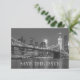 Paysage urbain de la ville de New York avec Mariage du pont de Brooklyn Enregistrez la date. Conception simple mais élégante d'invitation de mariage. La conception présente les noms dans une police de caractères élégante. Peut être personnalisé selon les couleurs de votre mariage pour le texte et l'arrière-plan. Des graphiques, une photo ou un monogramme peuvent être ajoutés pour personnaliser ce modèle. SUIVEZ-NOUS ! -- FB : @ElegantInvitationAndMore IG : @Elegant_Invitation ZGROUPON