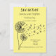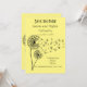 Joli jaune pastel SAVE THE DATE card avec détails personnalisés et dandelion souhaitant horloge avec papillons.