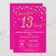 Invitation surprise 13e anniversaire avec Arrière - plan Diamant de Parties scintillant rose et or Hot Pink. Gold Confetti.Anniversaire enfant. Ado adolescente, garçon ou fille, anniversaire.