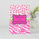 Invitation Hot rose blanc Zebra Leopard 21e fête d'anniversai