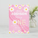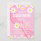 Hot rose Hippy Wave Daisy 1er Anniversaire Invitation Baisy coloré invitation de premier anniversaire dans différentes nuances de rose chaud avec marguerites blanches et jaunes. Idéal pour une fête d'anniversaire hippie.