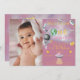 Adorable invitation pour l'anniversaire de naissance avec un astronaute, des fusées, Terre & étoiles sur un arrière - plan rose foncé. Retournez notre invitation de filles mignonnes pour voir une étoile de tir de coordination. Visitez notre boutique pour toute notre gamme, y compris les cartes de tirage de tombola et de livre correspondantes.