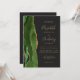 Le bord gauche de cette élégante faire-part de mariage moderne est orné d'une bordure en aquarelle vert de chasseur, recouverte d'une parties scintillant en faux or. Le texte personnalisable combine écriture manuscrite couleur or, cuivre et polices italiques sur un arrière - plan non noir. L'envers offre de l'espace pour les détails du mariage sur un arrière - plan sombre solide, ainsi qu'un code QR que les invités peuvent scanner pour visiter votre site Web et RSVP, ce qui permet d'économiser le coût d'impression et d'envoi de cartes RSVP séparées.