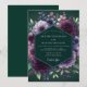An opulent and moody atmosphere is created by a stunning floral arrangement set against a dark hunter-green backdrop. Rich, jewel-toned blossoms in shades of plum, amethyst, and deep magenta create a dramatic and romantic display. Lighter lavender anemones and soft green leaves provide delicate highlights, completing this painterly botanical composition.