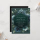 This elegant design features a dramatic floral display. Painterly slate blue and ivory anemones bloom from a deep, hunter green background. Lush foliage and delicate buds complete the moody and romantic composition, perfect for a sophisticated evening affair.