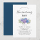Invitez vos proches à célébrer votre nouvelle maison avec cette invitation intemporelle pour une pendaison de crémaillère. Avec des hortensias bleu poudre douce à l'aquarelle, rehaussés de fleurs roses délicates et de feuilles vertes luxuriantes, ce design floral classique est parfait pour une réunion de printemps ou d'été.