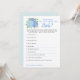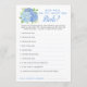 Cette carte de jeu de douche nuptiale est Comment connaissez-vous bien la mariée? Il a 10 questions auxquelles les joueurs peuvent répondre. Le design comprend des fleurs d'hydrangée bleu aquarelle. Personnalisez le dos des cartes avec le nom de la mariée. Produits correspondants disponibles.