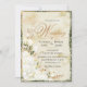 Elégantes hydrangées d'aquarelle blanche avec éléments de parties scintillant dorée et verte. Tons d'ivoire blanc antique dans des verts mixtes. Une invitation neutre parfaite pour tout choix de couleur de mariage. Mélangez votre thème de couleur avec des tons crème et blanc antique pour un look vintage élégant. Les verts profonds semblent particulièrement riches avec des fleurs blanches et crème et des pièces d'accent. L'arrière - plan est une aquarelle couleur crème affaissée avec des tons verts et nus mélangés donnant à cet invitation un aspect rustique décontracté mais élégant.