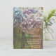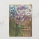 Un faire-part de mariage rustique avec une photo d'un bocal de maçon d'hydrangées bleu et violet clair au-dessus d'un arrière - plan en bois de grange. Personnalisez le texte avec les détails de votre occasion.